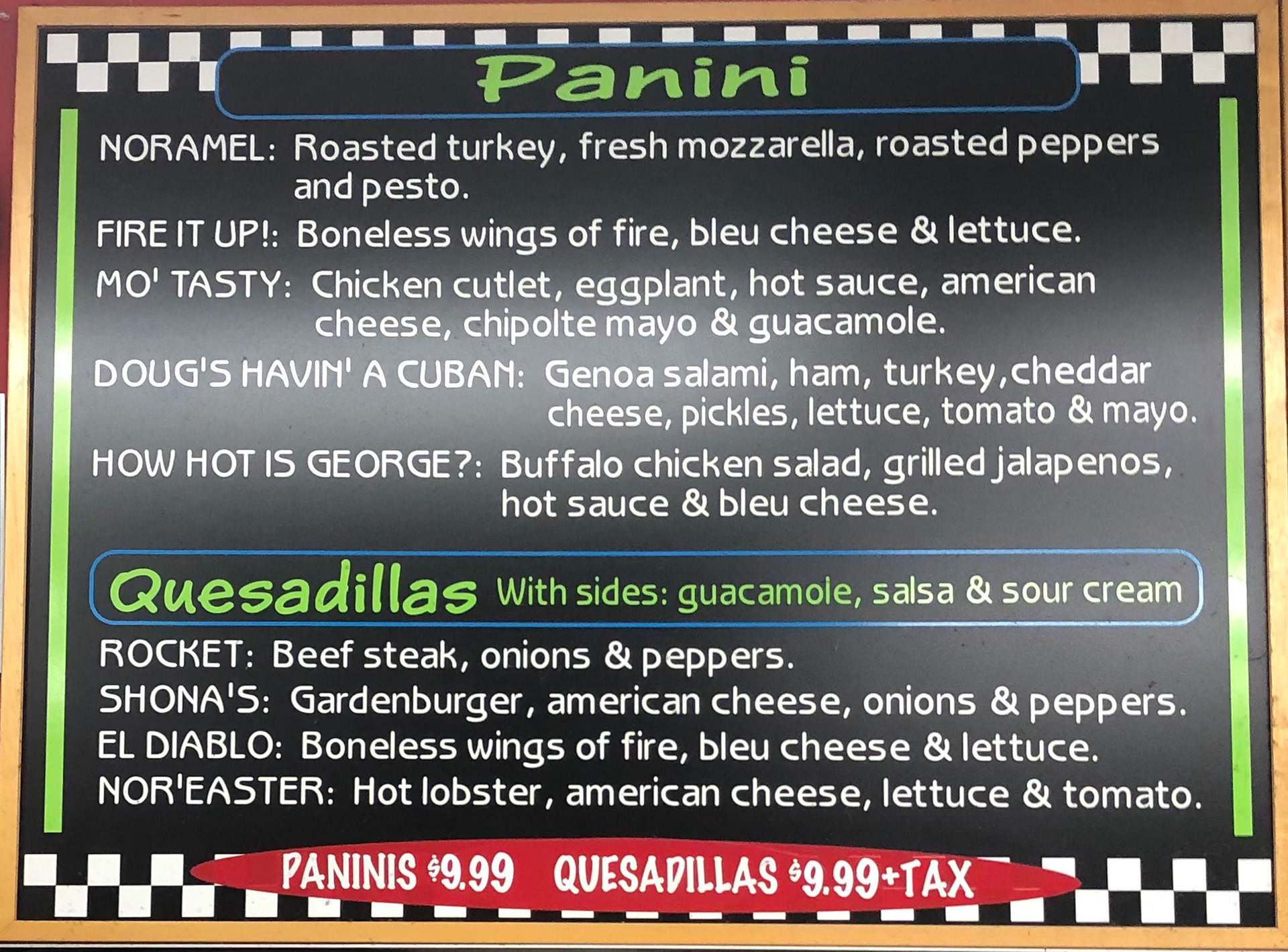 guacamole*, hummus, pesto*, mustard (dijon, honey, spicy, yellow), chipotle sauce, horseradish, sauerkraut, ranch dressing, Thousand Island dressing, blue cheese dressing; bacon (1.25 extra charge any size, excludes BLT)